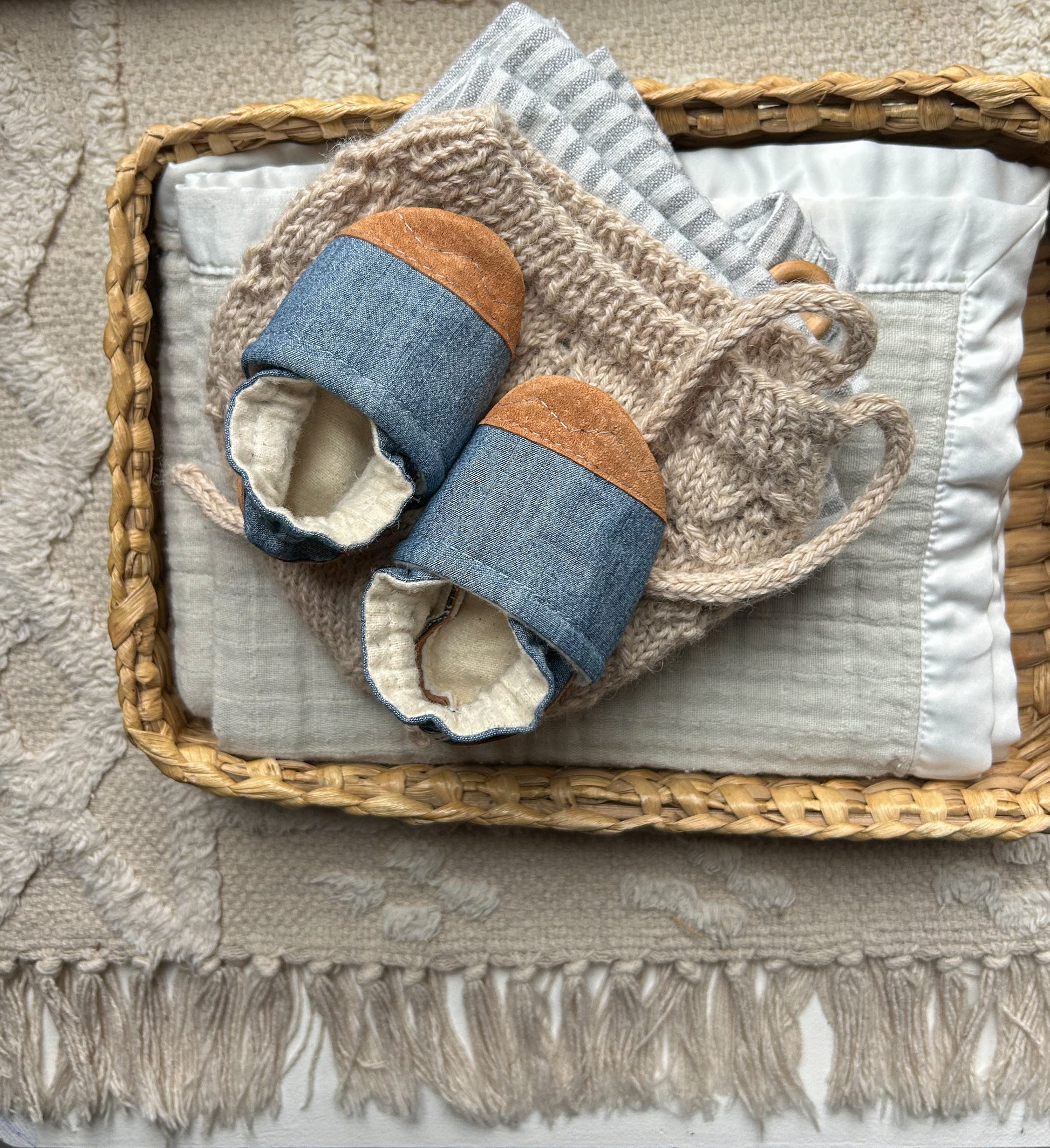 chambray soft soled baby shoes - upcycled